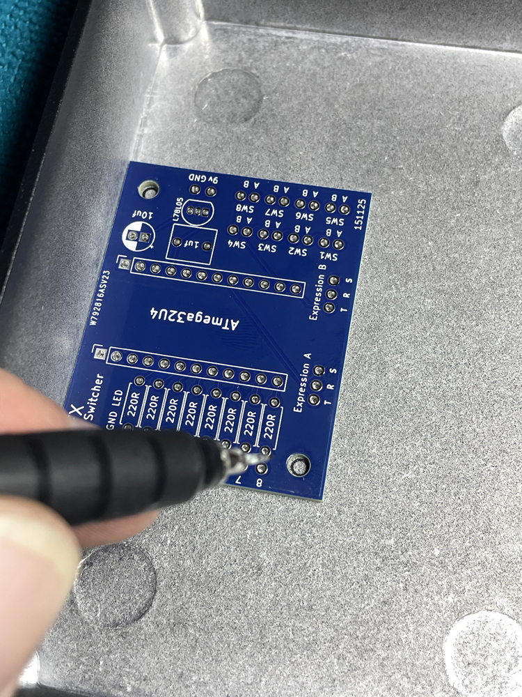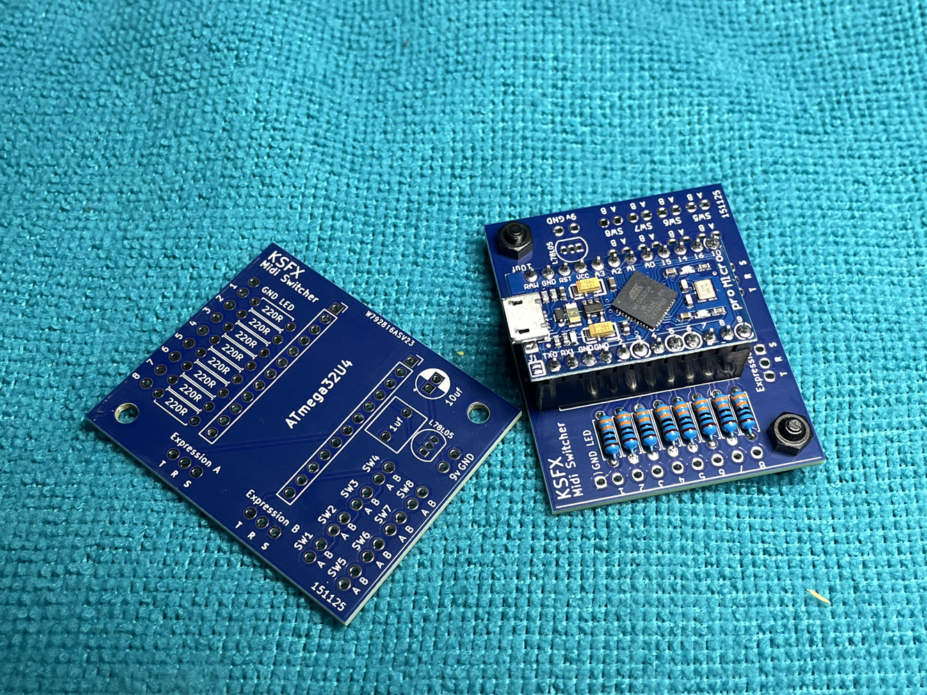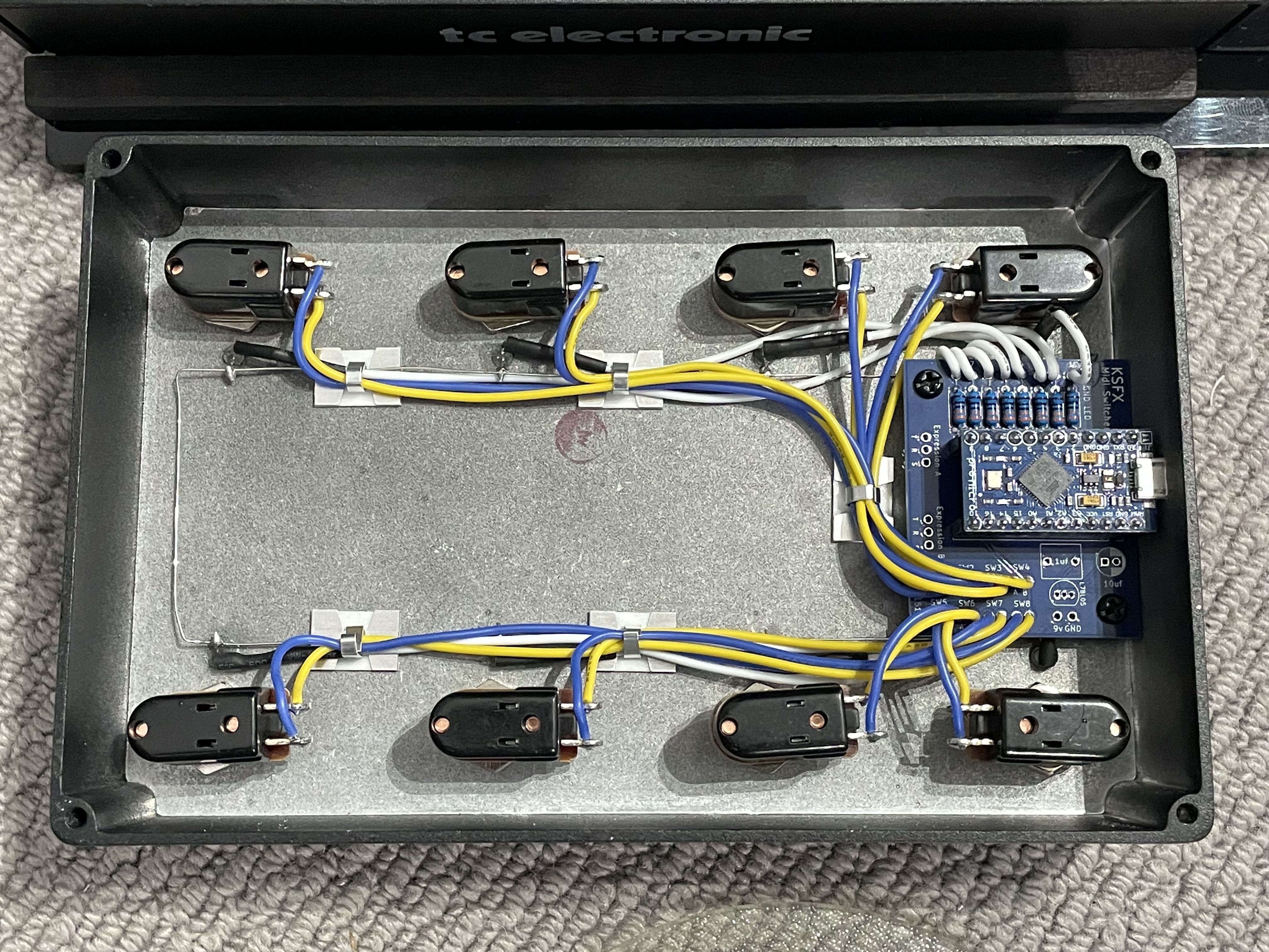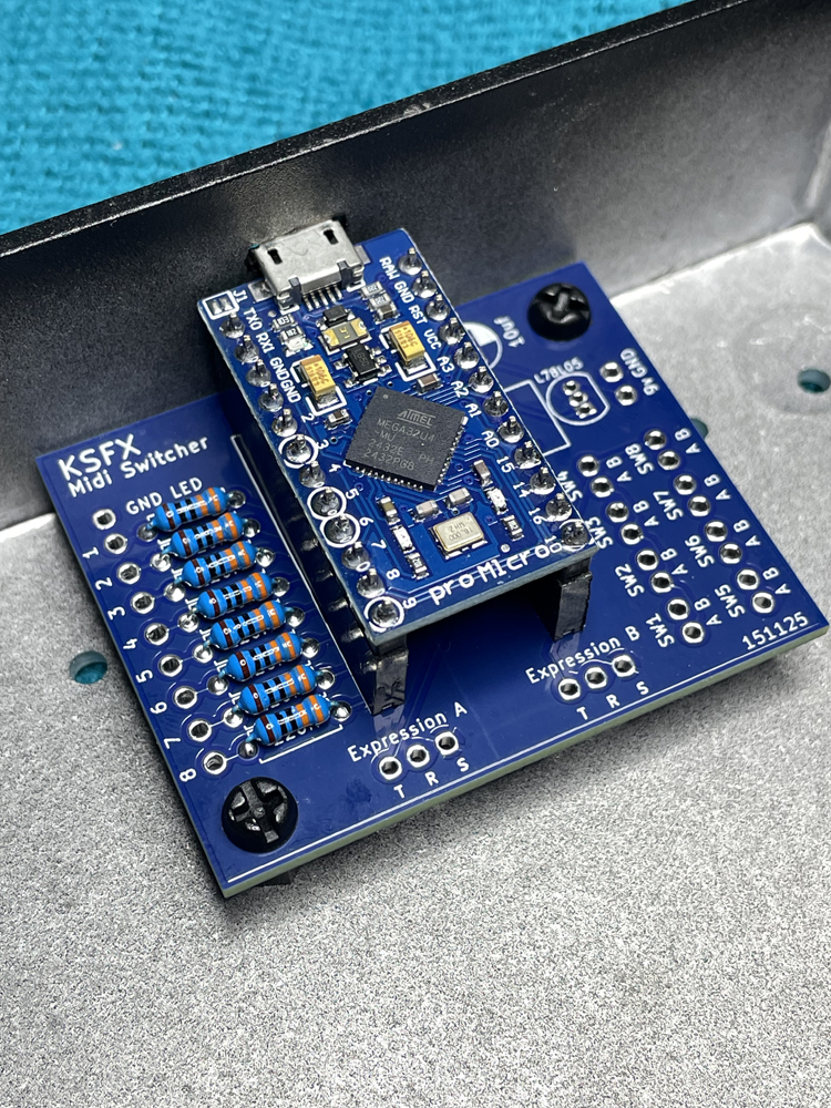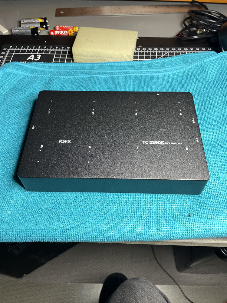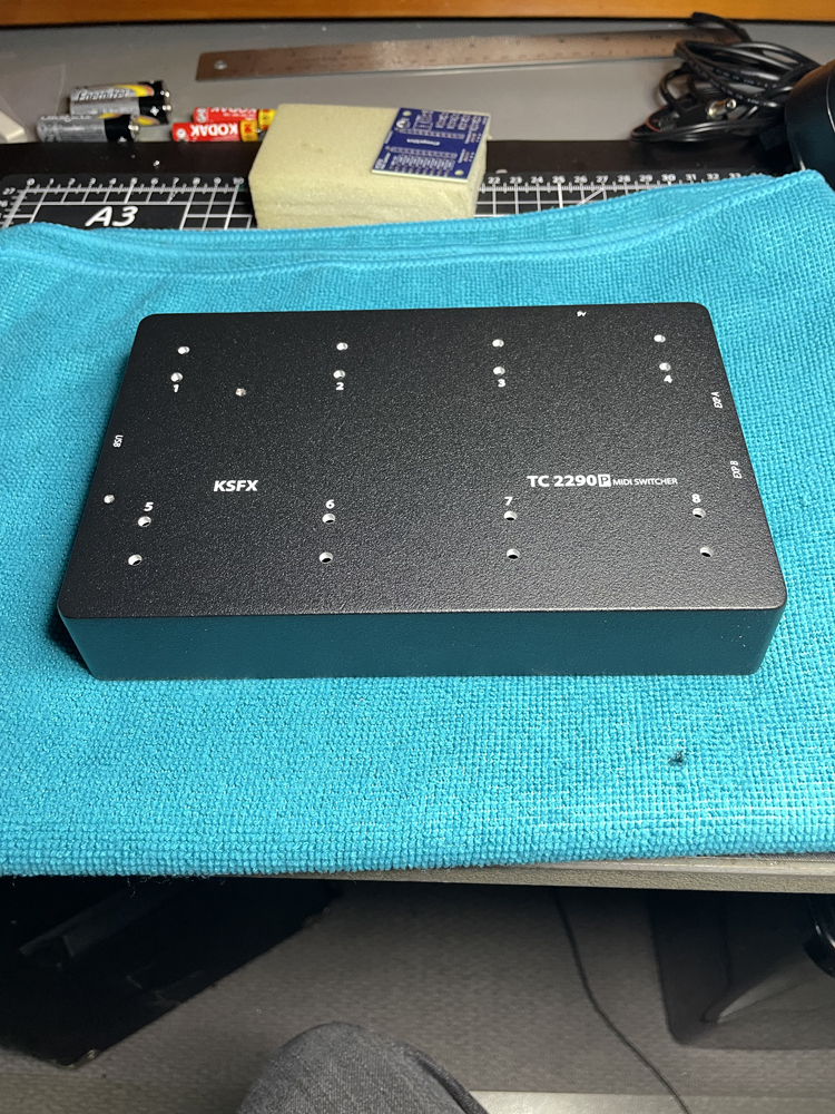 ![]() My tc electronic 2290p delay pedal is a wonderful effects unit but I have difficulty navigating the presets. By design, it has 64 banks of 2 presets, all controlled with 3 footswitches. That makes for a lot of tap dancing when trying to get from let say, preset 1 to preset 8. The 2290p has a USB midi device port (to be connected to a computer) and midi in & out via 5pin DIN sockets. I wanted to keep the USB port connected to my pc so had to utilise the midi in port. I decided on 8 footswitches as that was the most I'd likely be able to fit in a 1590DD enclosure without hitting 2 buttons at the same time. I also wanted both signal and power via the same cable. Answer is the AtMega pro micro which can act as a midi device. As this would still require a computer between the unit and my 2290p, I built a tiny midi host (shown under the Digital section above) and used a modified usb to midi cable to make the final connection. The midi board functions perfectly and the enclosure, painted and printed by Tayda matches well with the original enclosure |