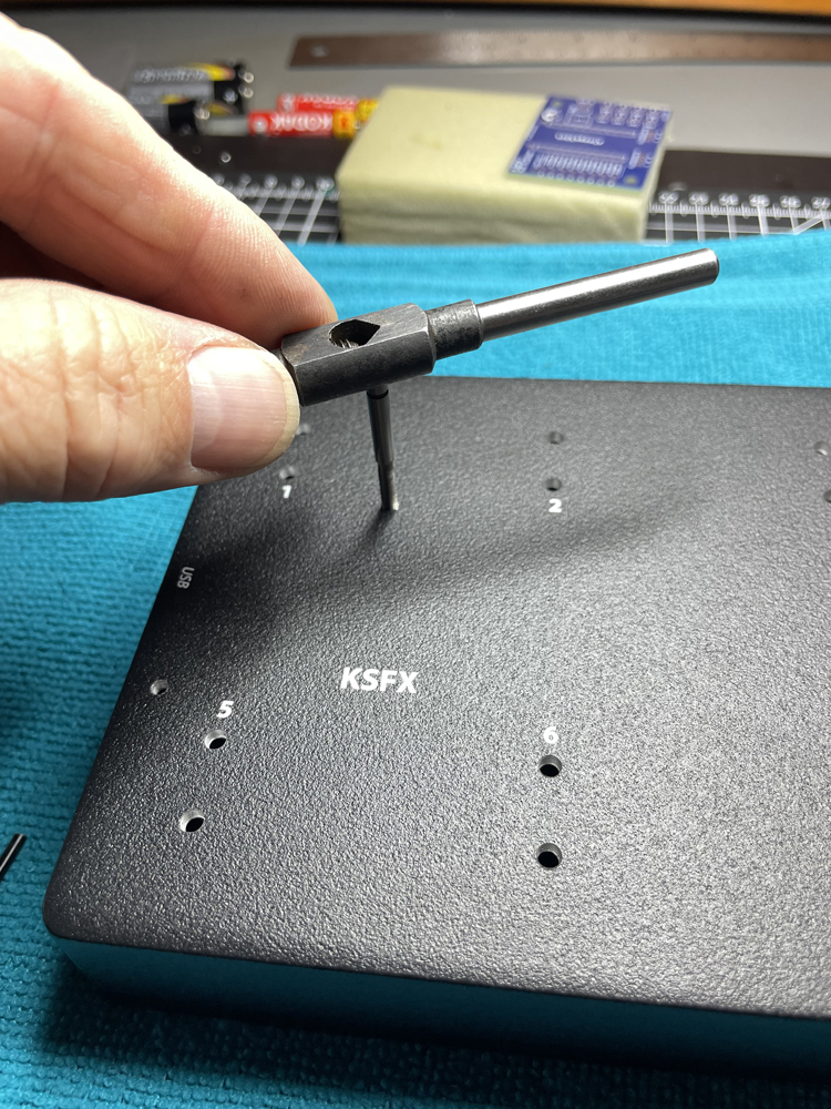 Deadastronaut FXIts a mono effect but I wondered if I could make it full stereo by creating a header board housing the components for the second chanel. This was made possible by Rob designing his pcb to accept either the smd component or one which is pre mounted on a riser board. I chose to use the smd chip and use the risers to power and communicate with my own pcb. Enclosure was UV printed at Tayda Electronics on a Roland printer. I incorporated small dots into the design where hole had to be drilled the center punched, drilled and opened them up to the correct size with a reamer. While the final thing fitted into the enclosure, I was worried about the tiny clearance with the lid so used a thin sheet of pet just in case. This is a build once, program forever pedal and this stereo version is, as far as I'm aware, the only one anywhere |